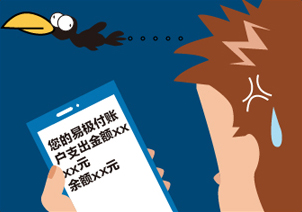 4.结果几分钟之后,你的手机提醒你账户钱被转走了。